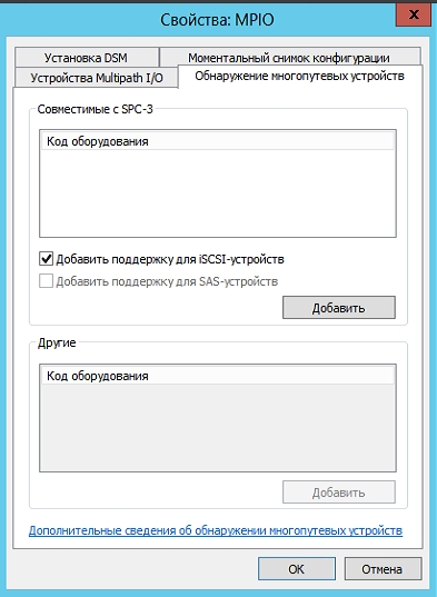 Итак, скачали, установили, перезагрузили, но диски все равно двоятся. В интерфейсе MPIO поставить галочку Add support for iSCSI device и снова перезагрузиться.