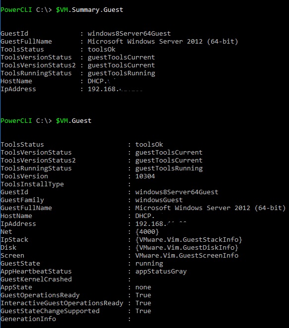 Обратив внимание на более компактный вид команды $VM.Summary.Guest.